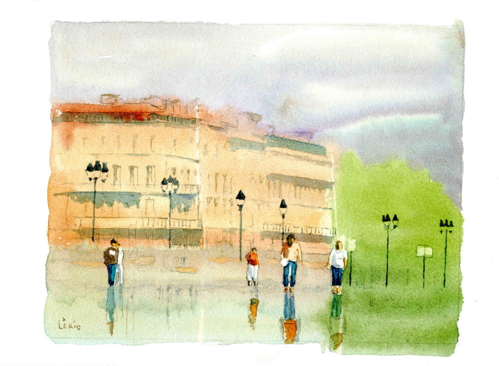 Réalisée à Bordeaux, cette œuvre est particulièrement chère à l’artiste Denis Leric, qui y exprime son attachement à la ville et à ses lieux emblématiques. Les touches fluides et lumineuses de l’aquarelle renforcent la sensation de fraîcheur et de sérénité.