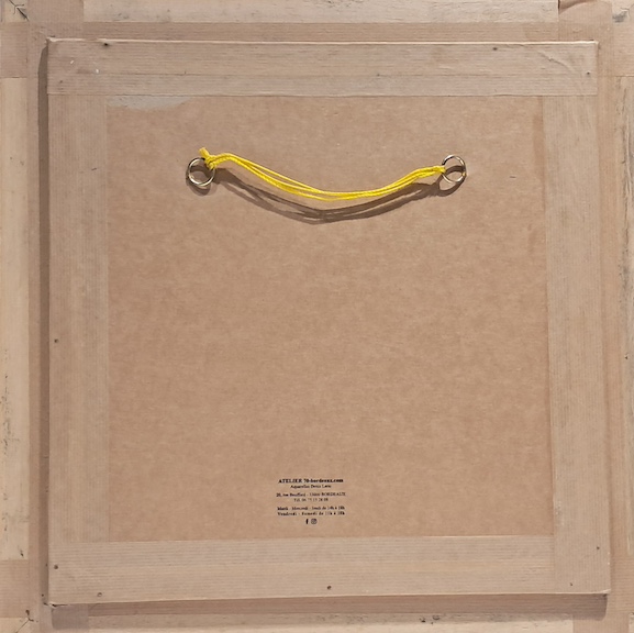 Réalisée sur papier Fabriano, reconnu pour sa qualité et sa longévité, l’aquarelle mesure 22 × 48 cm. Elle est présentée dans un encadrement soigné de 48 × 48 cm, mettant en valeur l’œuvre sans en altérer la légèreté. L’ouverture à la française, beige, est contrecollée sur un fond blanc et soulignée par un filet bleu qui apporte une touche d’élégance et de profondeur visuelle. L’aquarelle est collée sur un carton à pH neutre, garantissant une conservation optimale, et protégée par une baguette en loupe d’orme clair, dont le veinage naturel fait écho à la chaleur des tons de la scène.