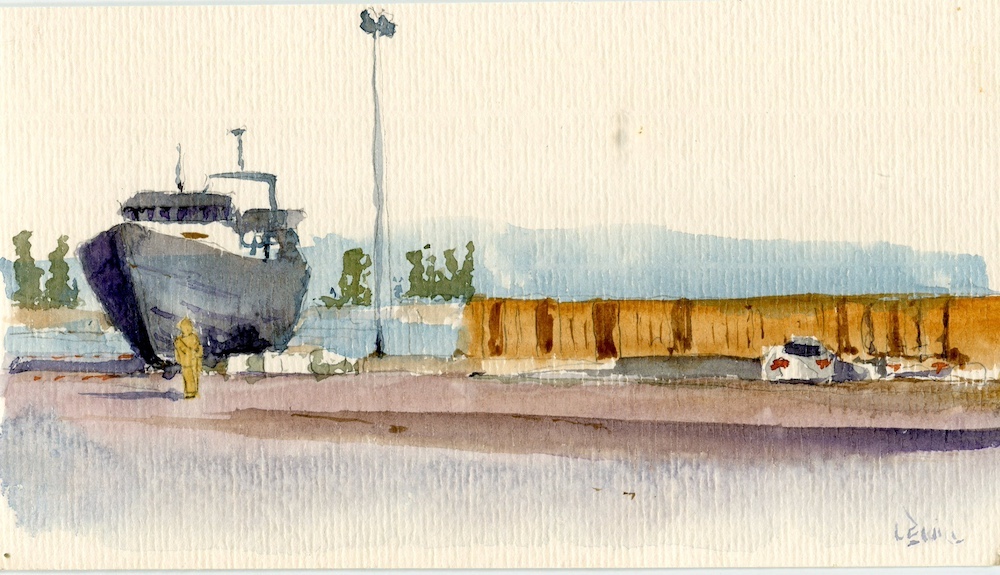 Cette scène, traitée à l’aquarelle, capture l’âme du port : un lieu où le travail des hommes, l’architecture et le quotidien se rencontrent avec élégance et authenticité.