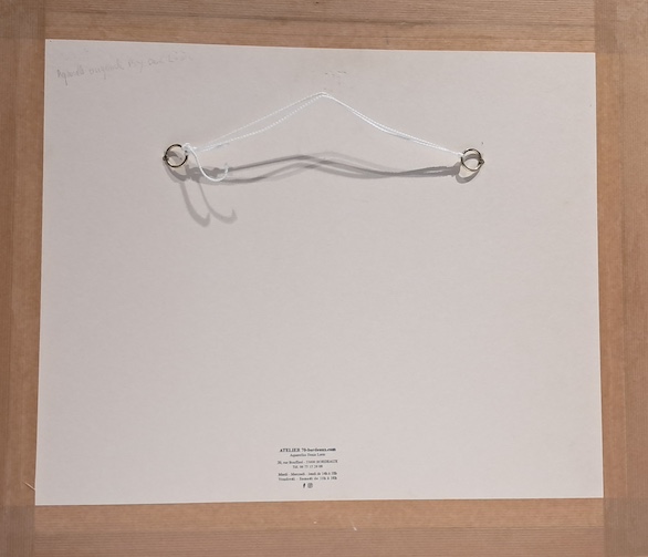 • Dimension avec Encadrement : 57cm × 46 cm , ouverture droite de 1 cm, contrecolé blanc , baguette grise bleutée.