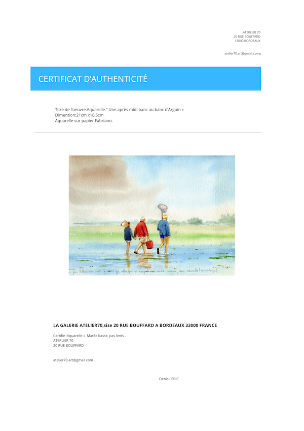 Un certificat d’authenticité est fourni avec l’œuvre.